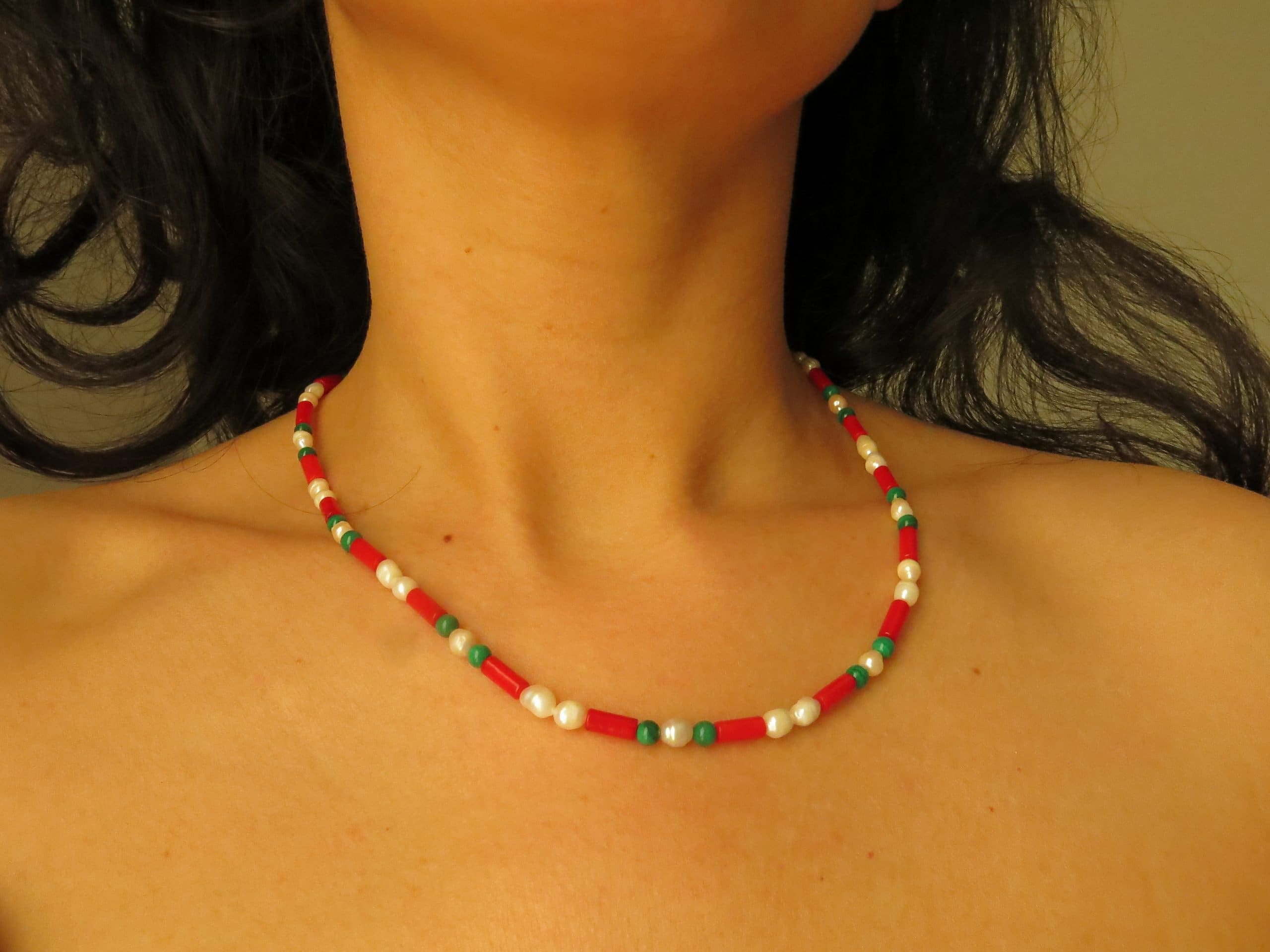 Mais derrière cette palette vibrante se cache un équilibre subtil : la malachite, pierre de transformation et de force, rencontre la douceur des perles d’eau douce et l’énergie aquatique des coraux. Yin et Yang, feu et eau, puissance et sensibilité.